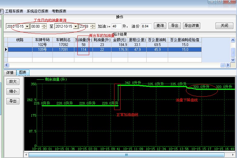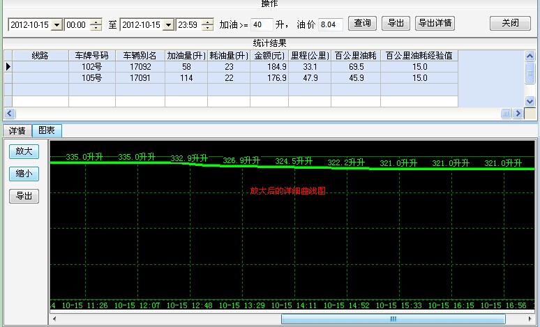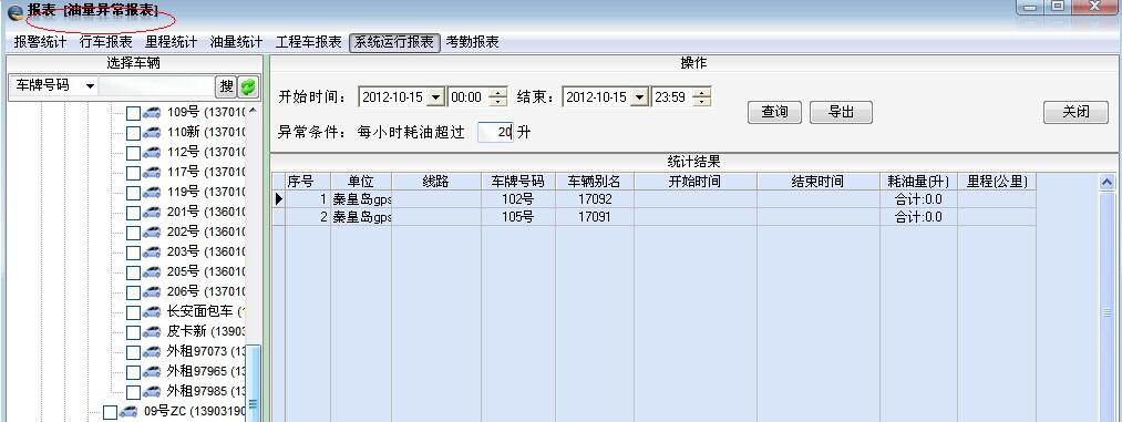 設置車輛百公里油耗參數(shù)后,系統(tǒng)可統(tǒng)計車輛在任意時間段內的油量消耗情況。